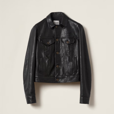 MIUMIU 미우미우 24FW 가을겨울 신상 로고 레터링 가죽 자켓