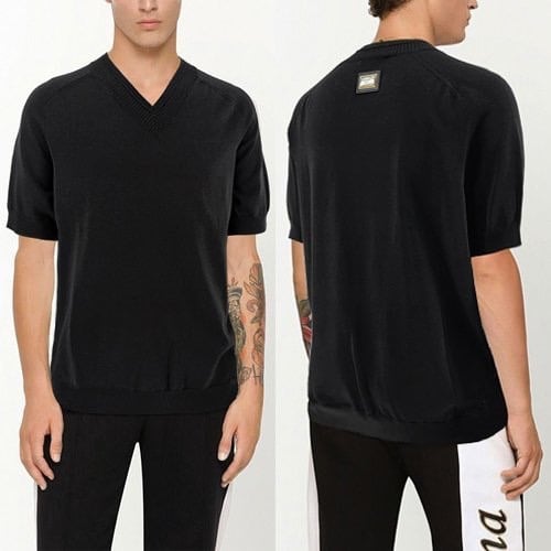 DOLCE&GABBANA 돌체앤가바나 백플레이트 브이넥 니트반팔