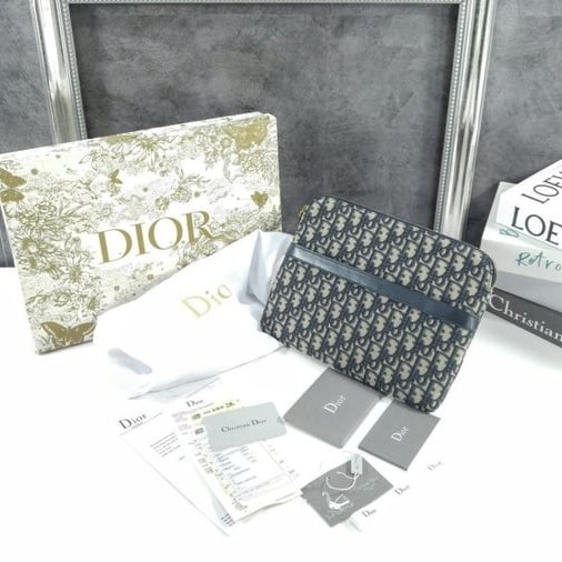 DIOR 디올 Travel 파우치 ㅡ블루 Oblique 자카드