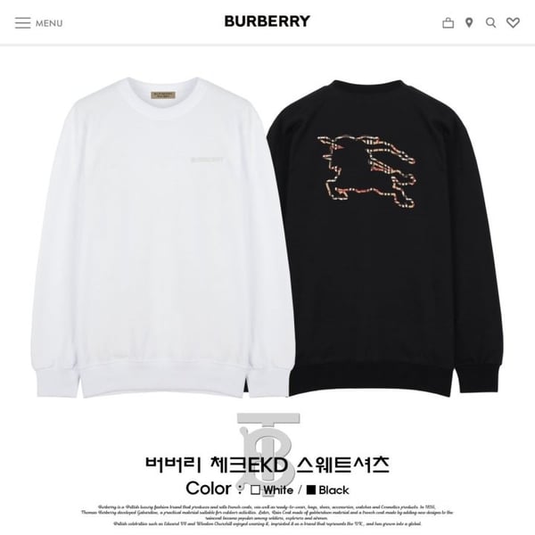 BURBERRY 버버리 체크EKD 특양면맨투맨