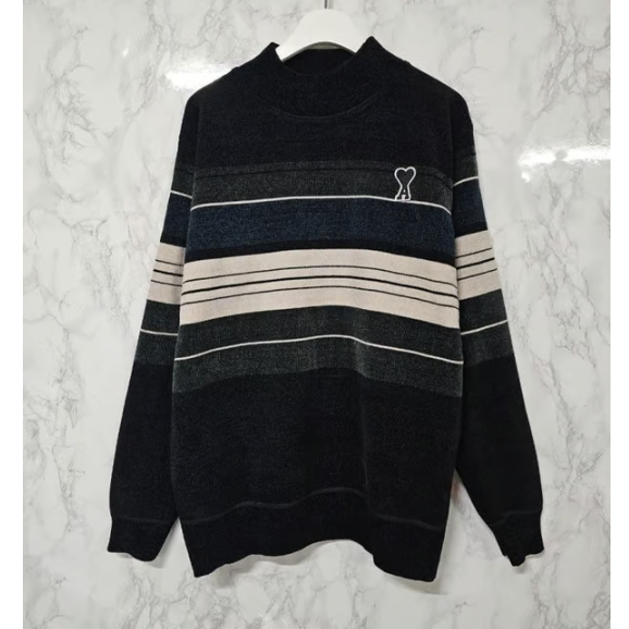 AMI 아미 배색 스트라이프 반목 니트