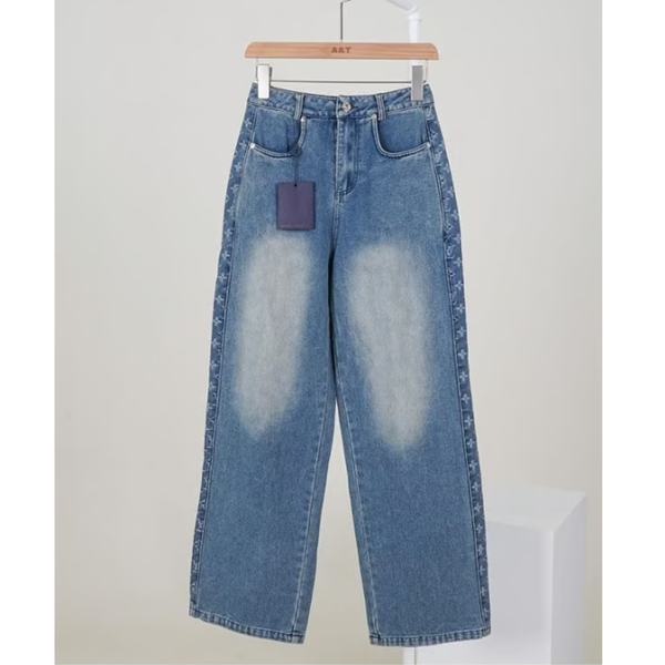 LOUIS VUITTON 루이비통 여성 사이드 모노그램 워싱 와이드 데님 팬츠