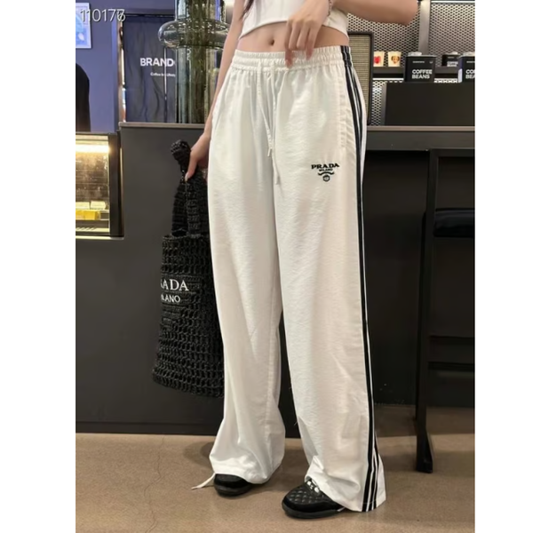 PRADA 프라다 여성 리나일론 와이드 라인 팬츠