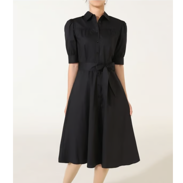 BURBERRY 버버리 타이 웨이스트 쇼트 슬리브 셔츠 드레스