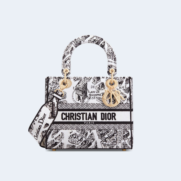 디올 레이디 D-Lite 플랜 데 파리 미디움 백 화이트 > 여성