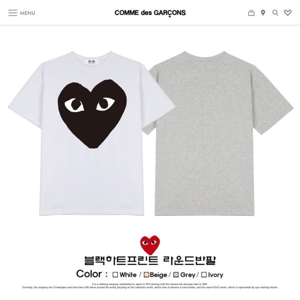COMME DES GARCONS 꼼데가르송 블랙하트프린트 오버핏 라운드반팔
