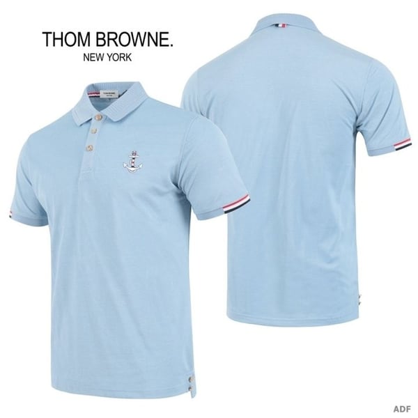 THOM BROWNE 톰브라운 앵커자수 골드버튼 반팔 카라티