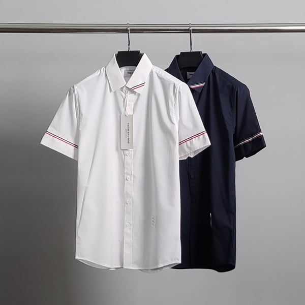 THOM BROWNE 톰브라운 카라라인 소매삼선 반팔 셔츠