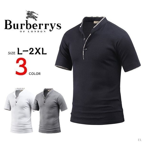 BURBERRY 버버리 배색 헨리넥 반팔 카라티