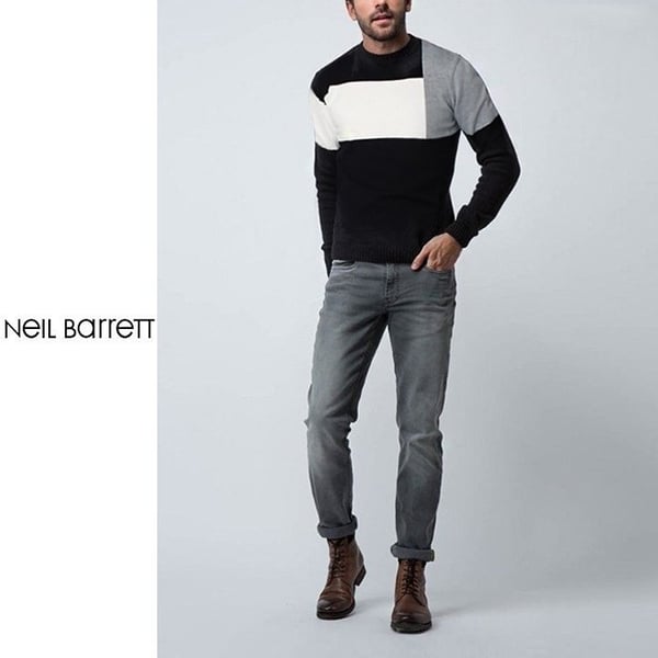 NEIL BARRETT 닐바렛 인타르시아 배색 라운드 니트