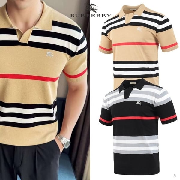 BURBERRY 버버리 스트라이프 오픈 카라 니트