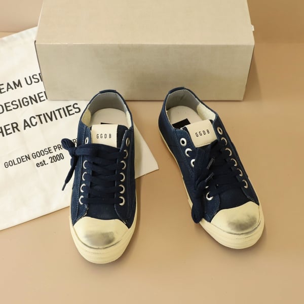 GOLDEN GOOSE 골든구스 네이비 스웨이드스타 & 엠브레이더리 레터링 브이스타 LTD 스니커즈