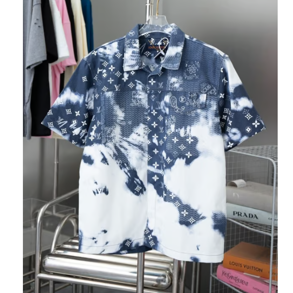 LOUIS VUITTON 루이비통 남성 반다나 쇼트 슬리브 데님 셔츠