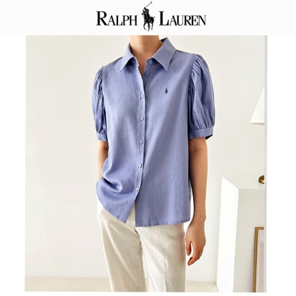 RALPH LAUREN 랄프로렌 퍼프 소매 린넨 블라우스