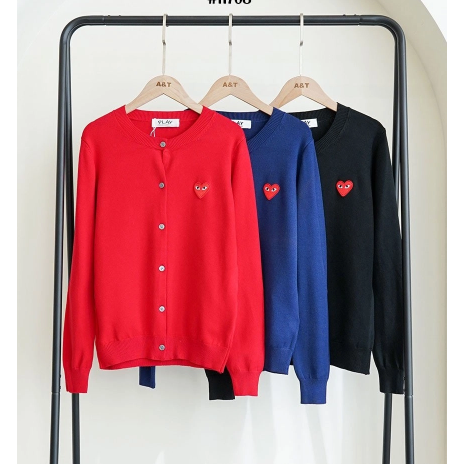 COMMEDESGARCONS 꼼데가르송 빅레드하트 로고 라운드 니트 가디건