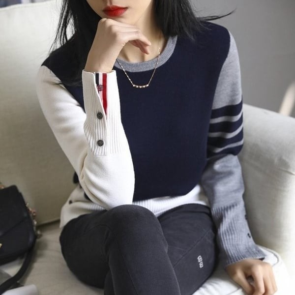 THOM BROWNE 톰브라운 네이비 배색 니트 라운드