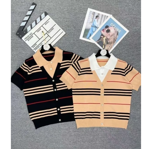 BURBERRY 버버리 카라 레이어드 반팔 니트
