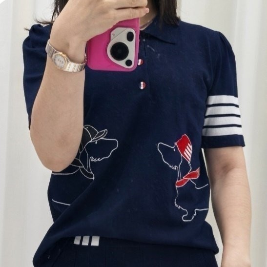 THOM BROWNE 톰브라운 캡헥터 카라 반팔 니트