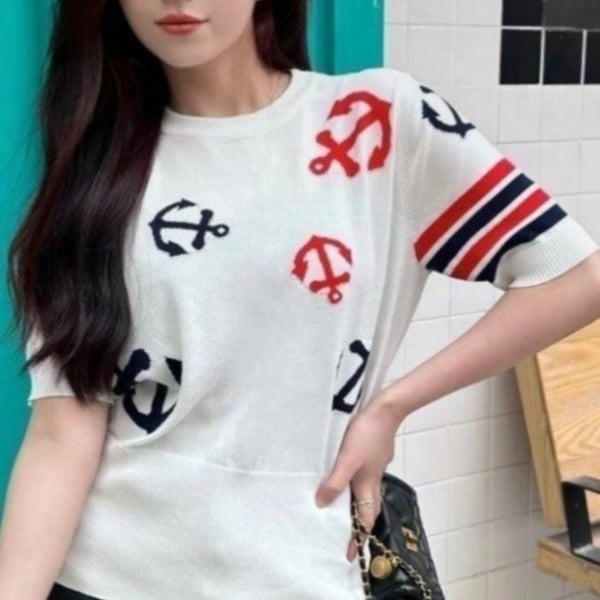 THOM BROWNE 톰브라운 멀티 앵커 라운드 반팔 니트