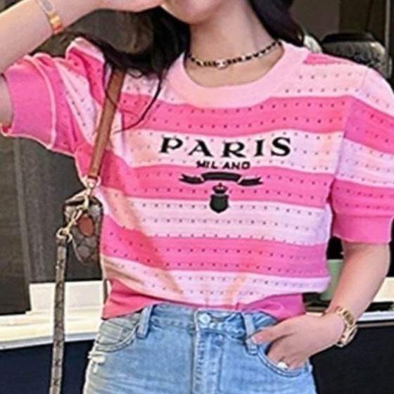 PRADA 프라다 파리스 자수 반팔 라운드 니트
