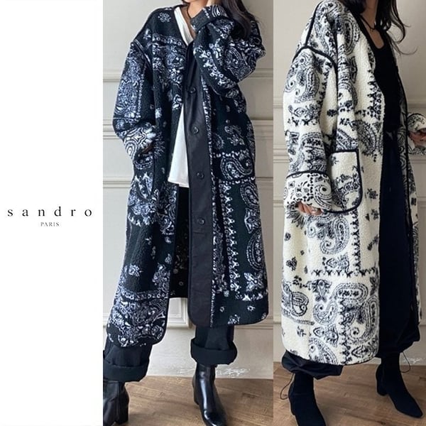 SANDRO 산드로 롱페이즐리 양털자켓