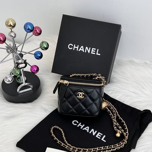 CHANEL 샤넬 골든볼 미니 베니티백 블랙 램스킨